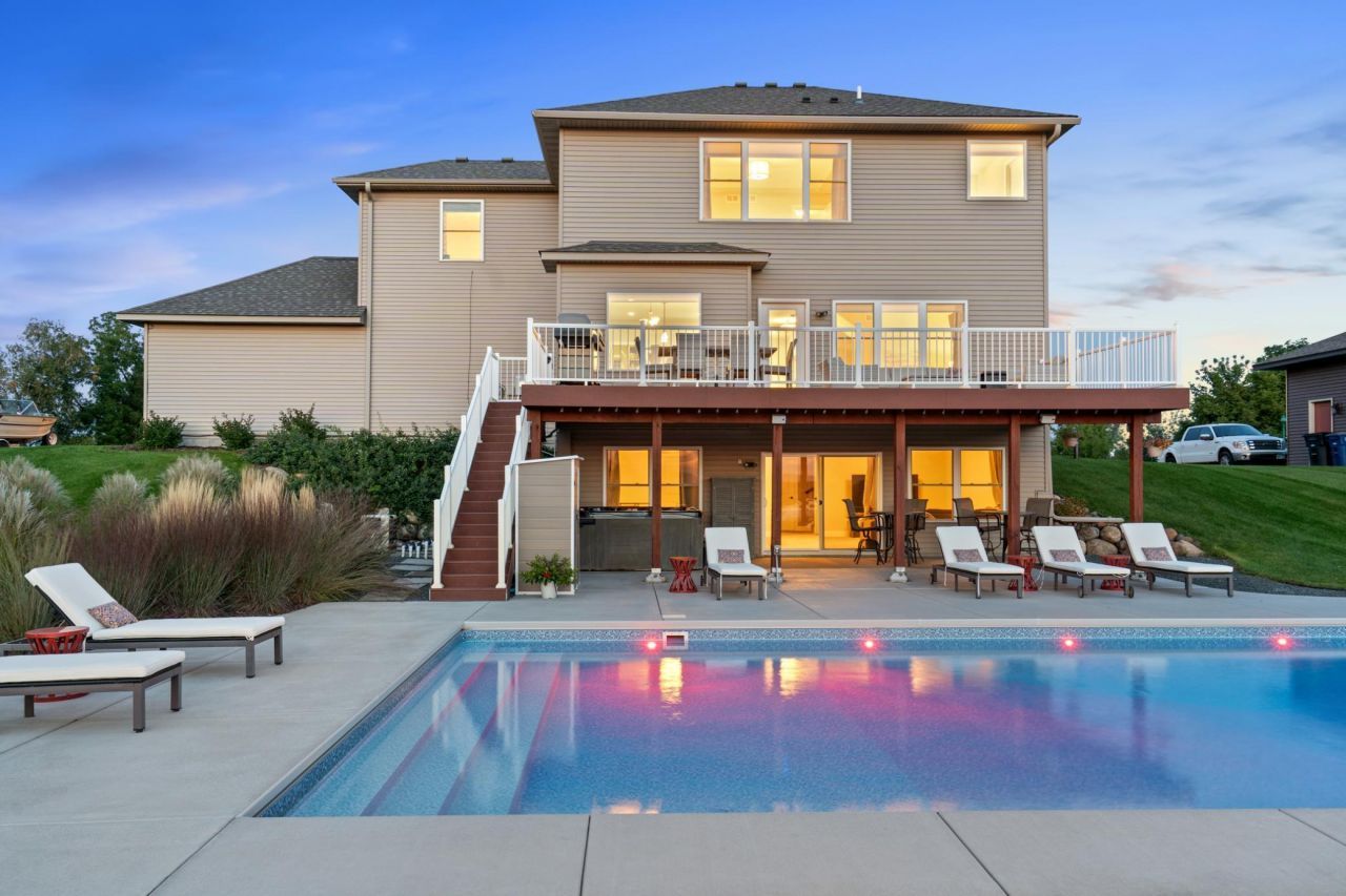 Welcome to 26022 Sunset Drive - never miss a sunset at this Green Lake home!This west-facing, two-story home offers 100 feet of shoreline and unforgettable sunset views, all set on a beautifully landscaped lot with a sprawling backyard and in ground salt water pool. Built in 2016 the home features 5 bedrooms, 4 bathrooms, and an oversized 3-car garage.The main level is thoughtfully designed with an open-concept layout and expansive windows that frame panoramic lake views. Step outside to a large maintenance-free deck overlooking the lake - the perfect place to entertain or unwind. The outdoor space sets this property apart: an in-ground salt water pool ,hot tub, and an expansive backyard that leads to your private dock. Power has already been run to the dock, offering convenience and flexibility for future use. Additional features include zoned HVAC, allowing you to customize temperature on each level, Kinetico water purification with reverse osmosis & UV Light purification, in ground irrigation system, and a large 2nd lot available for building a shed, garage, or mother-in-law suite.This is more than just a home, it's a lakefront lifestyle with space to gather, relax, and enjoy every season.