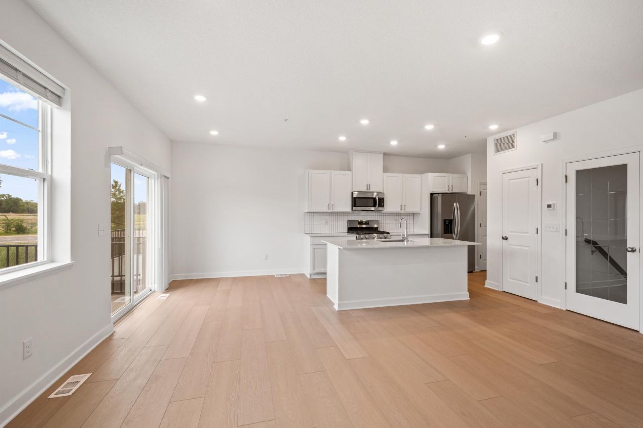 This home is under construction and available for a June closing date. Ask about qualifying for $6,500 in closing costs when using the Seller's Preferred Lender! This beautifully designed two-story townhome blends modern style with everyday functionality. A dramatic double-height foyer welcomes you inside, setting the tone for the open-concept first floor where the Great Room, kitchen, and dining area flow seamlessly together and extend to a private attached patio?perfect for entertaining or relaxing. The kitchen is equipped with sleek stainless steel appliances, adding both elegance and convenience. Upstairs, you'll find two comfortable secondary bedrooms along with a luxurious owner's suite featuring a spacious walk-in closet. The Richmond also offers an unfinished walkout basement giving the possibility to create a finished lower level, providing flexible space to suit your lifestyle needs.Trails End Commons offers new townhomes for sale in Eagan, MN, with convenient access to desirable schools and major highways!