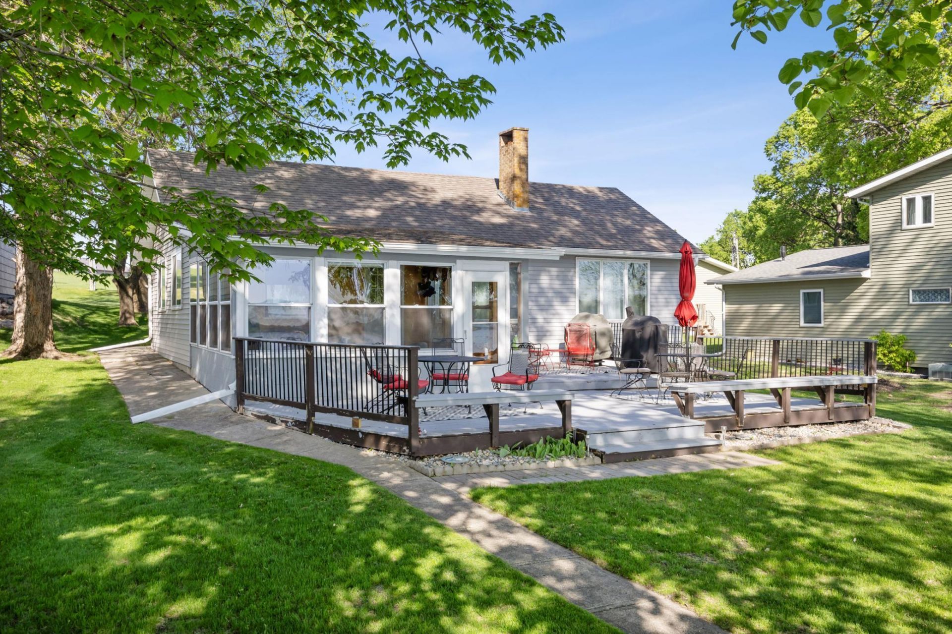 Lake Lida opportunity! Dock included. Prepare to be amazed at the amount of space this 2 parcel offering will give you. Both the lakeside home along with the backlot that provides a 34x40 garage with 1000 finished SF of living space and a half bathroom is a rare find. The main home combines indoor/outdoor living seamlessly. The large lakeside deck not far from the water gives beautiful views of Lake Lida. The knotty pine 3 season porch is a great segway between indoors and outdoors. Once inside, the kitchen, dining, and living room with a gas burning fireplace are at the heart of the home. On the main level you will appreciate 3 large bedrooms, 2 full bathrooms, and laundry. Downstairs has another large bedroom and the utility room. Overflow is not a problem with the backlot garage and living quarters. The fully finished garage space is extremely useful for boat, vehicle, and toy storage. The bonus space above offers separation from the main cabin for kids, guests, and grandchildren to have their own space. This property has been updated with newer siding, shingles, flooring, windows, and a new septic in 2020. This is an extremely well kept property that offers space, storage, and the ability to make lasting memories at the lake. Schedule a tour today!
