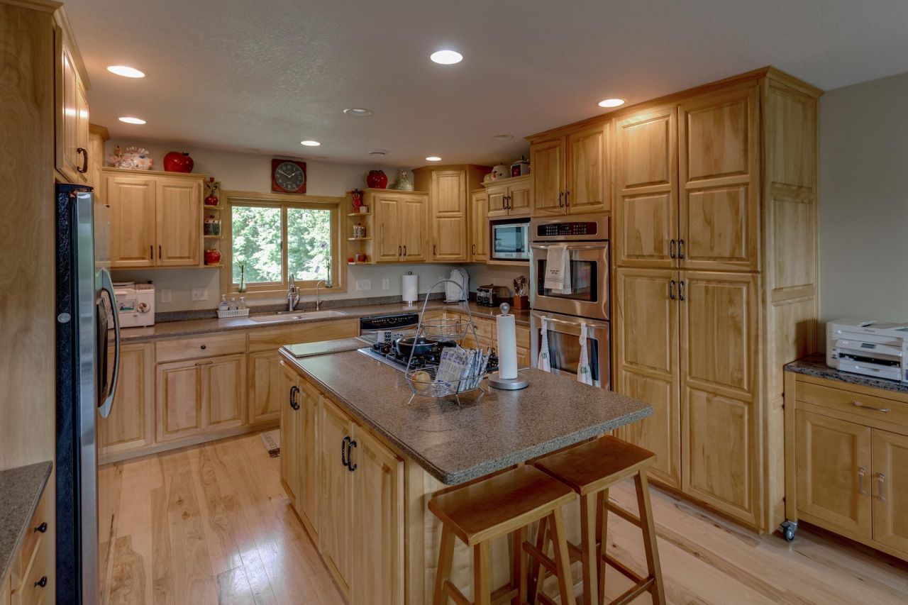 Enjoy peace and privacy on 41.24 wooded acres with a 3BR/3BA walk-out home overlooking Whiskey Lake, known for great crappie fishing. This home features hardwood floors, built-in cabinets, a stone gas fireplace on the main level, and a wood fireplace below. The deck faces the lake for morning and coffee and evening sunsets There is a lightly cleared path that leads to a private dock. Outdoor enthusiasts will enjoy the miles of walking and ATV trails that run throughout the property and connect to 1,000+ acres of public land with access to another private lake.Highlights include: master closet with laundry hookup, lower level plumbed for wet bar, new windows downstairs, Kinetico water system. In addition, since the sellers purchased the property, three outbuildings have been added: A 30x46 garage with 2 overhead doors, a 24x24 insulated workshop with sealed concrete floor, and a 48x72 pole shed. A rare find for outdoor lovers and those seeking space, seclusion, and water access.